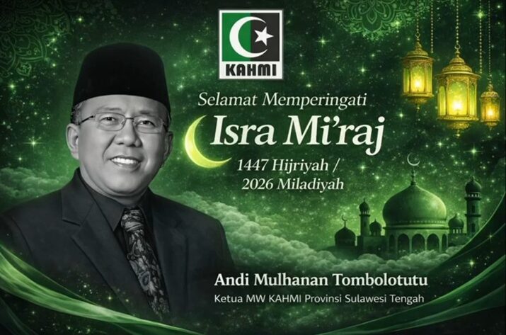 IniSulawesi.Com, Palu — Dalam momentum peringatan Isra Mi’raj Nabi Muhammad SAW 1447 Hijriyah/2026 Masehi, Ketua Korps Alumni Himpunan Mahasiswa Islam (KAHMI) Provinsi Sulawesi Tengah, Kakanda Andi Mulhanan Tombolotutu, menyampaikan pesan motivasi dan refleksi keislaman bagi seluruh umat, khususnya kader dan alumni HMI di Sulawesi Tengah.