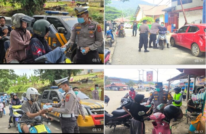 IniSulawesi.Com, Morowali Utara – Kepolisian Resor (Polres) Morowali Utara membagikan masker gratis kepada masyarakat sebagai upaya menekan peningkatan kasus Infeksi Saluran Pernapasan Akut (ISPA) yang belakangan ini terjadi di wilayah Kabupaten Morowali Utara, khususnya di Kecamatan Petasia dan Petasia Barat.